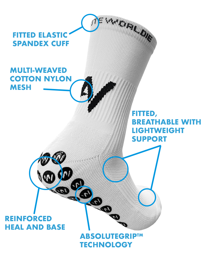 The new Absolute Worldie Grip Sock V2 has a new look, featuring a more minimalist design whilst still maintaining the trademark AW logo on the heel. This ensures you can stay aligned with your team colours and designs, without compromising your footing.
